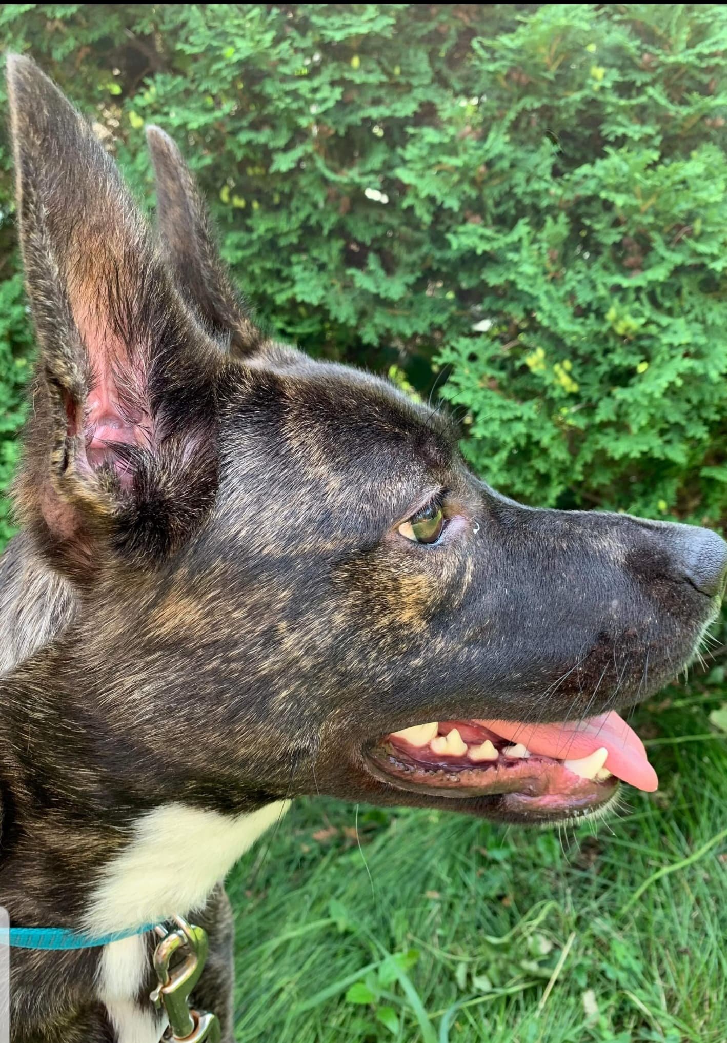 Jazzy is a very high energy and sweet girl. She’s friendly with people, children and other dogs. Unsure about cats. She loves to play, is crate trained, and potty trained. She knows a couple of basic commands like “sit” and is working on more. She’s smart and food motivated. She walks pretty good on a leash. She is very curious and we are working on having her not jump on people. Overall she’s very spunky and sweet! She has shown no signs at all of aggression or resource guarding. Jazzy would love to have a forever home! Please fill out an application today to gain a new instant best friend!